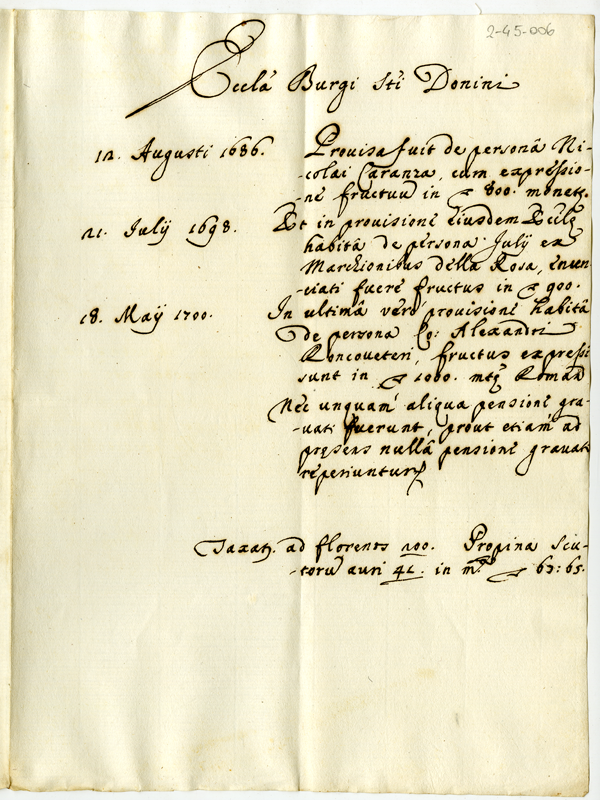 Benefici e tassazioni della chiesa di Borgo San Donnino (1700-1721)