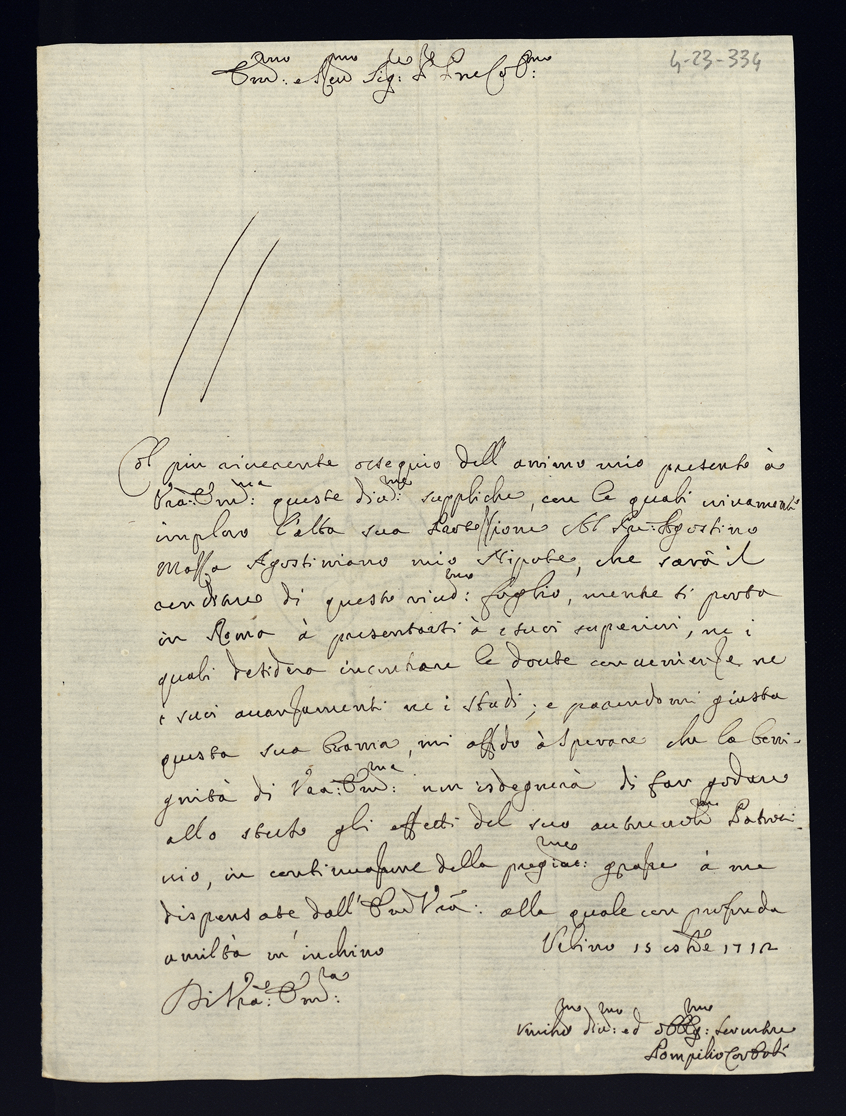 1712. Lettere di complimento e di negozio. Semestre secondo