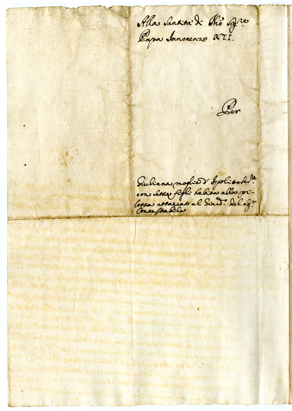 Lettera di Giuliana moglie di Ippolito servitore a papa Innocenzo XII (1691-170)