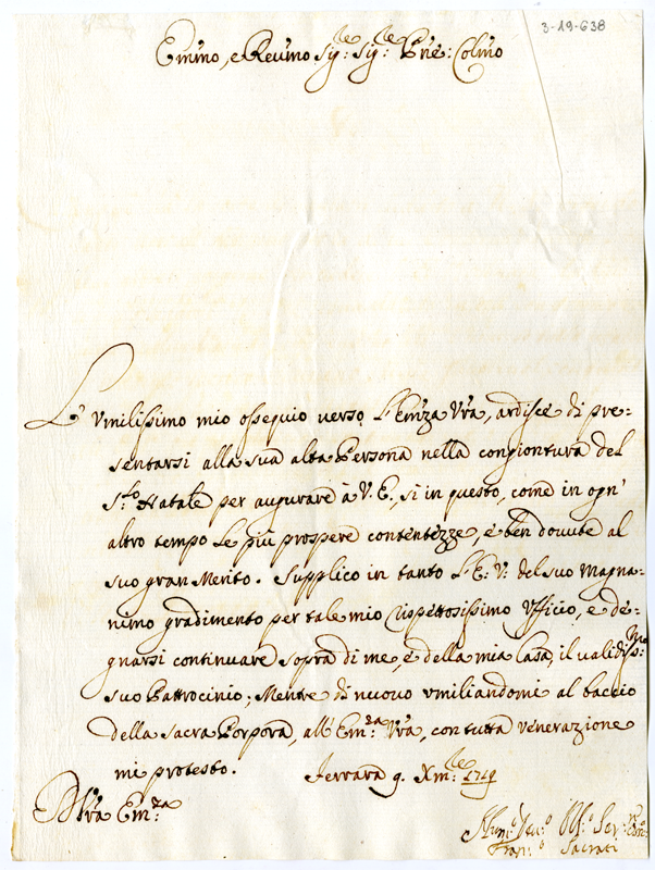 Lettera di Francesco Sacrati ad Annibale Albani (1719 dicembre 9)