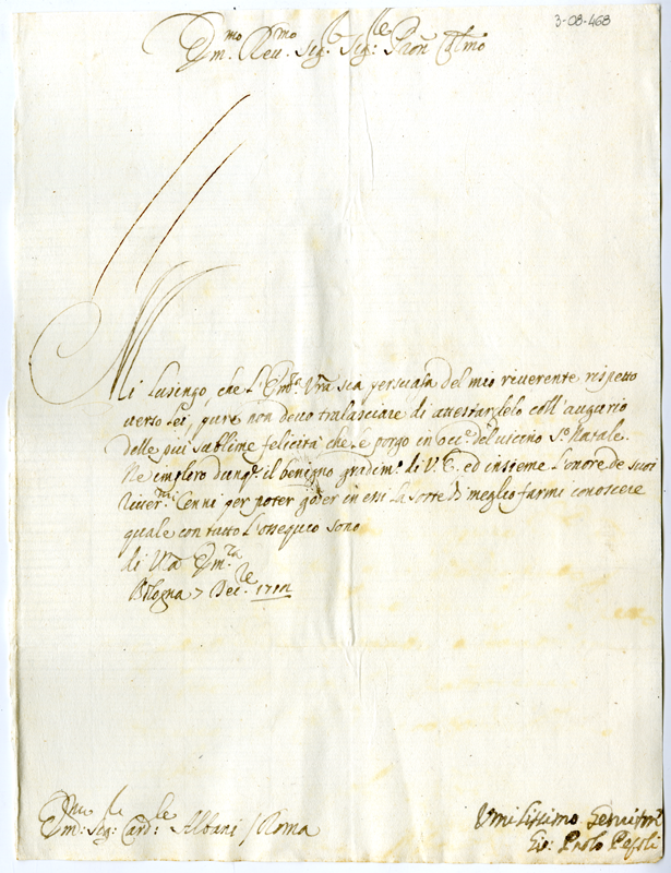 Lettera di Giovanni Paolo Pepoli al cardinale Annibale Albani (1712 dicembre 7)