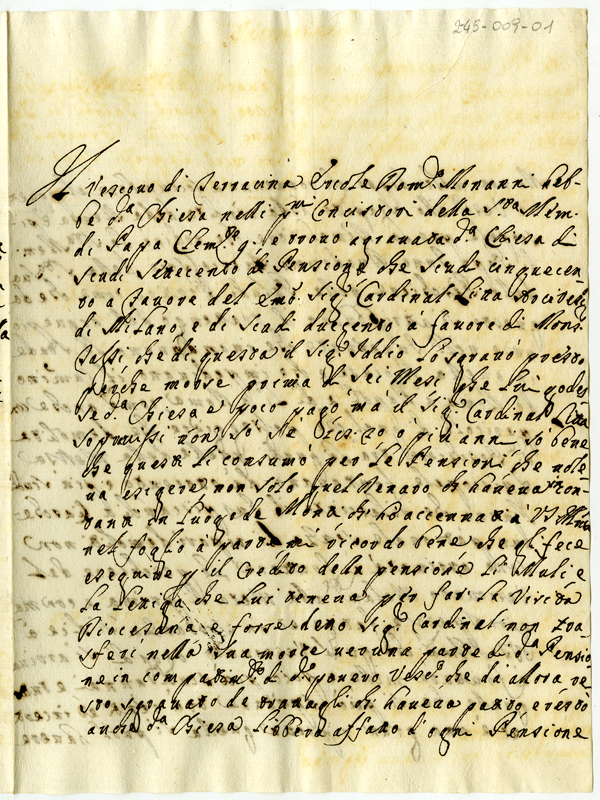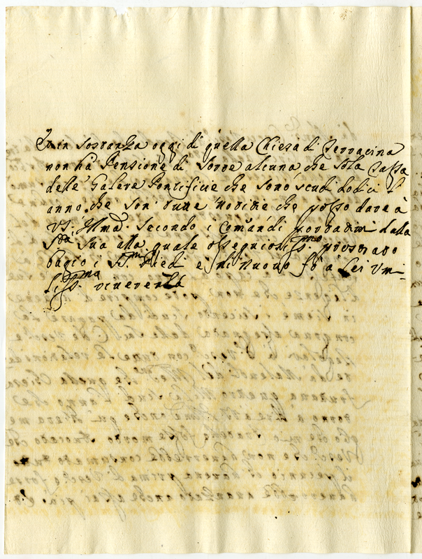 Esposizione delle pensioni gravanti in Terracina dal tempo del vescovo Ercole Domenico Monanni. Al presente detta chiesa non ha pensioni
