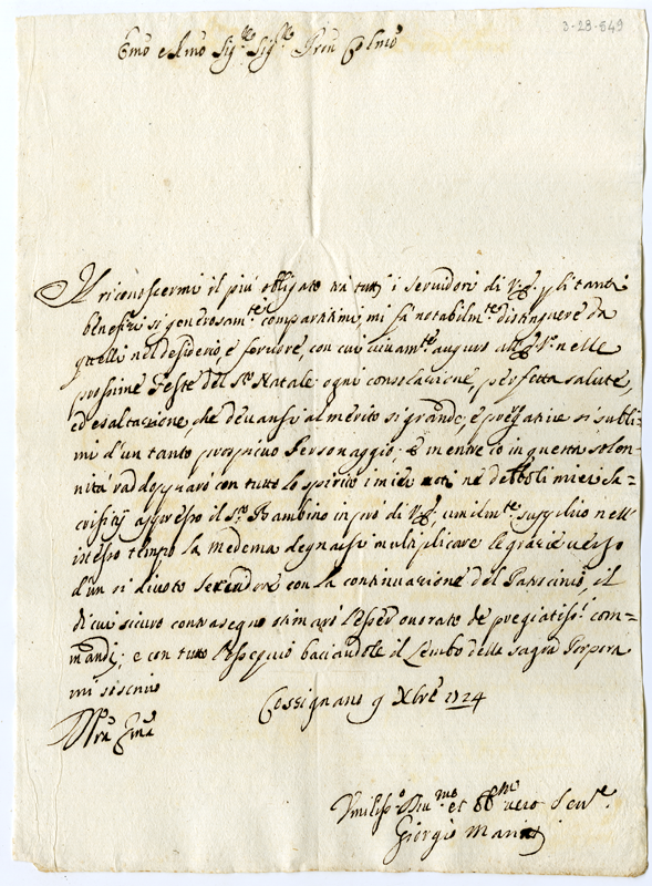 Lettera di Giorgio Marini al cardinale Annibale Albani (1724 dicembre 9)