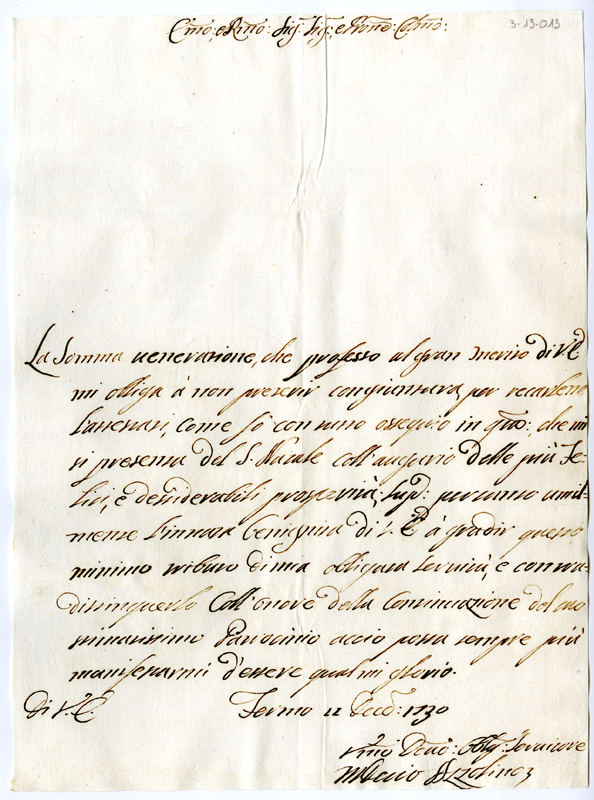 Lettera di Decio Azzolino al cardinale Annibale Albani (1730 dicembre 11)