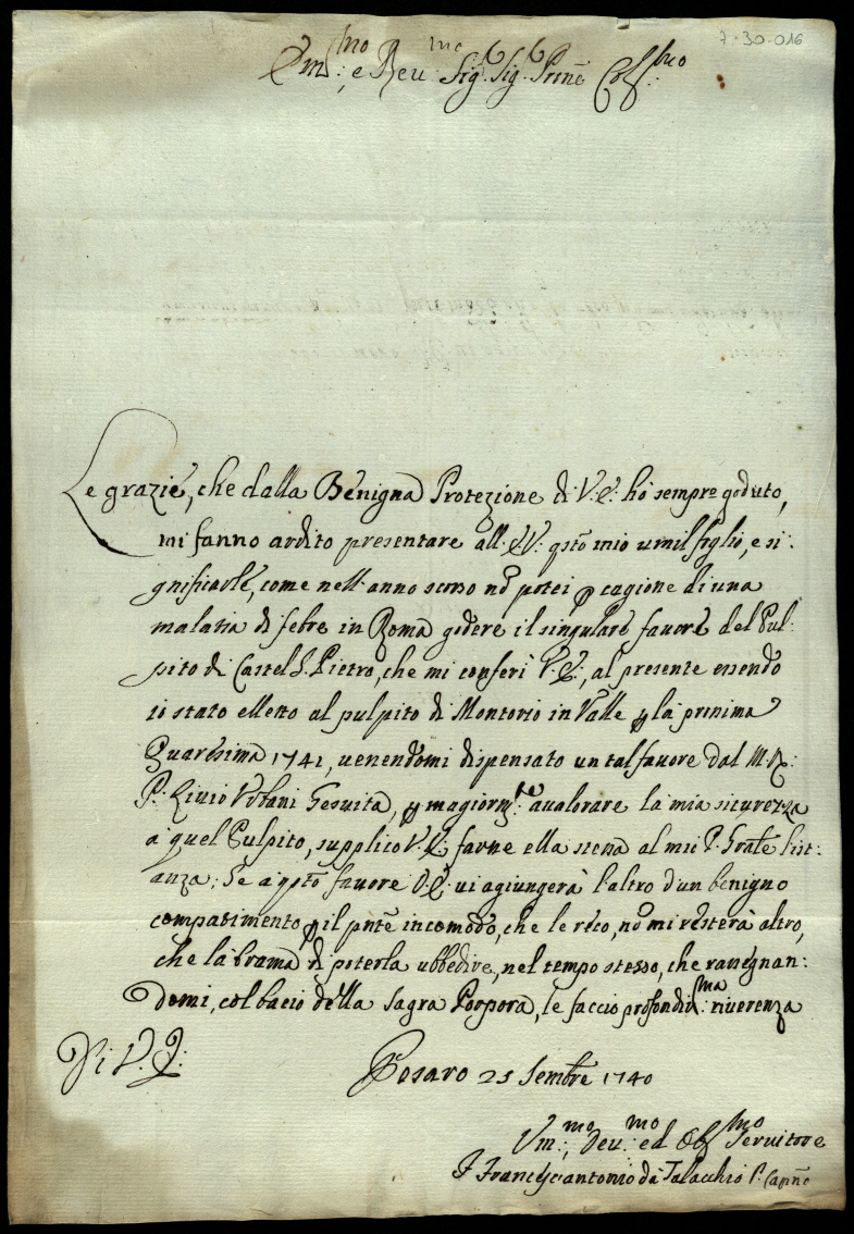 Lettere al cardinale di S. Clemente. 1740