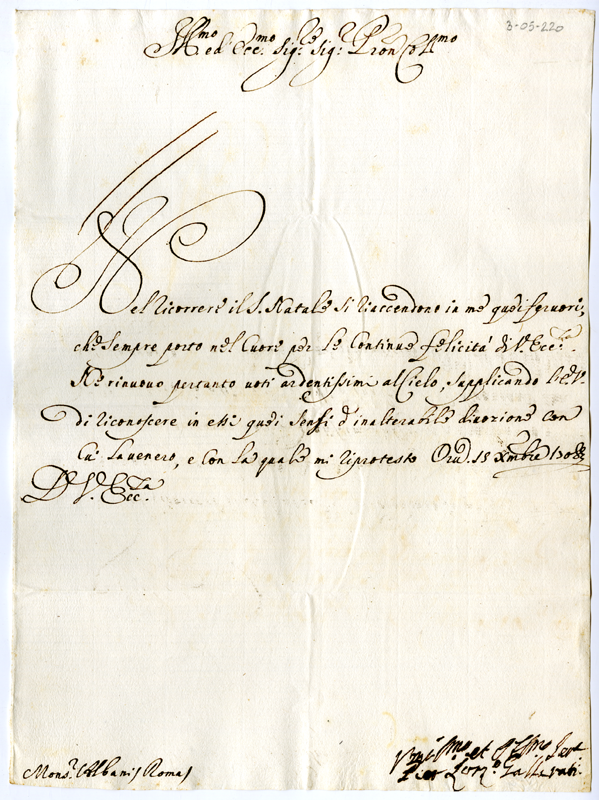 Lettera di Pier Lorenzo Gallarati ad Annibale Albani (1708 dicembre 15)
