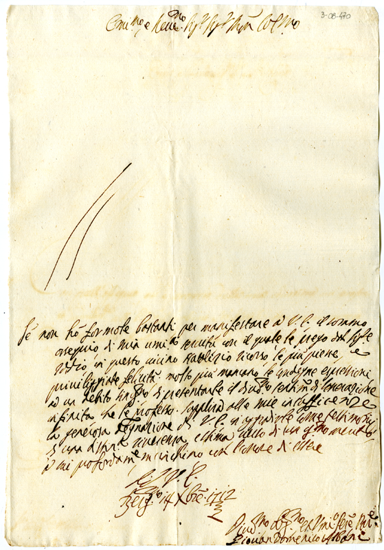 Lettera di Giovan Domenico Albani al cardinale Annibale Albani (1712 dicembre 14)