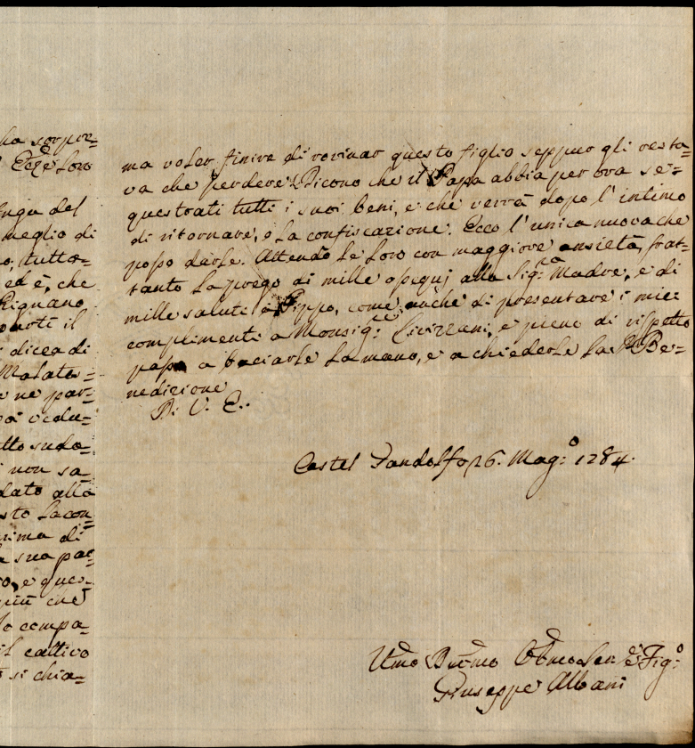 Lettere diverse ricevute in Colbordolo, Pesaro e Senigallia nel 1784