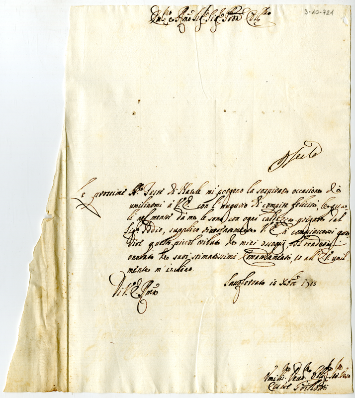 Lettera di Cesare Grillotti al cardinale Annibale Albani (1715 dicembre 15)