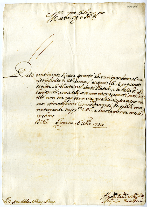 Lettera di Scipione Diotallevi ad Annibale Albani (1708 dicembre 16)