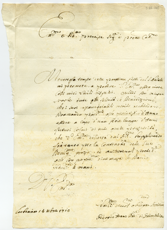 Lettera di Giorgio Adamo barone di Grimschirz al cardinale Annibale Albani (1714 dicembre 18)