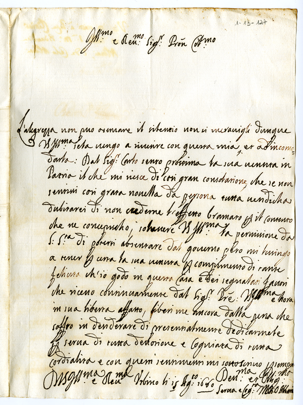 Lettera di Maria Bernardina Ondedei Albani al cardinale Gian Francesco Albani (1680 agosto 15)
