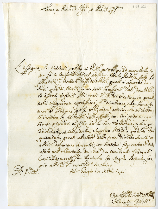 Lettera di Innocenzo Calisti al cardinale Annibale Albani (1721 dicembre 18)