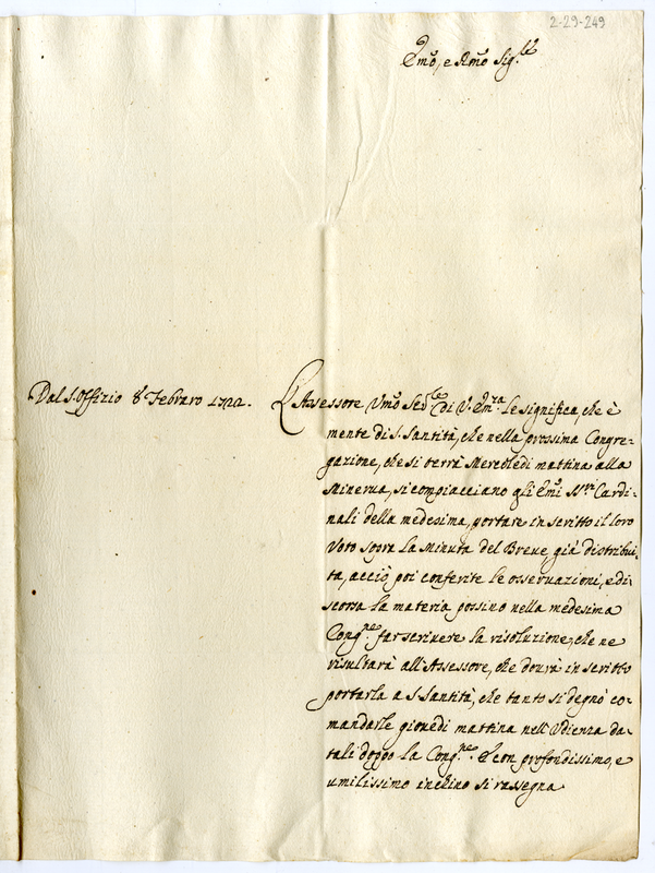Lettera dal Sant'Officio (1722 febrraio 8)