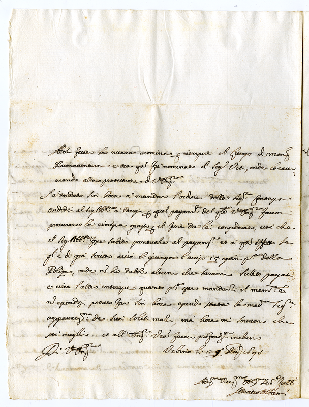 Lettera di Orazio Albani a Giovanni Francesco Albani (1691 gennaio 29)