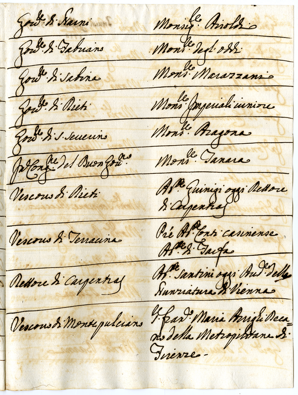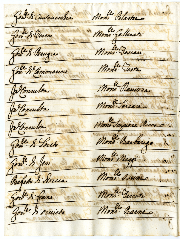 Elenco di nominativi e delle cariche corrispondenti (1700-1721)