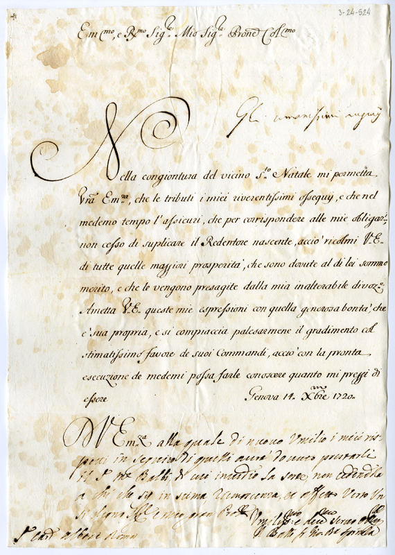 Lettera di Giovanni Battista Spinola al cardinale Annibale Albani (1720 dicembre 14)