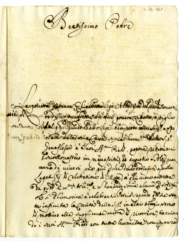 Supplica di suor Elisabetta Ligi a Clemente XI
