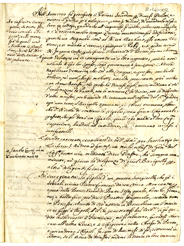 Su alcuni delitti del sacerdote Paciani e di altre persone (1700-1721)