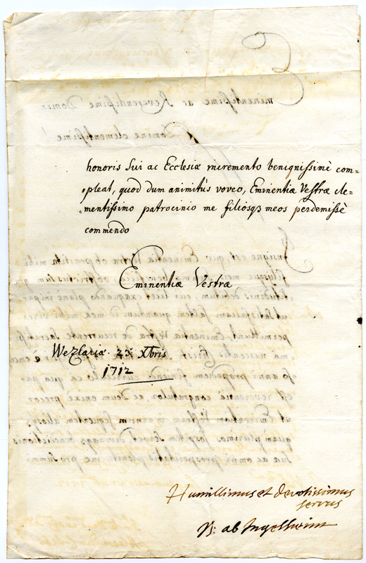 Lettera al cardinale Annibale Albani (1712 dicembre 23)
