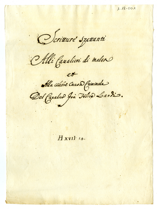Scritture spettanti alla cavalieri di Malta et alla celebre causa criminale del cavalier fra Felice Landi