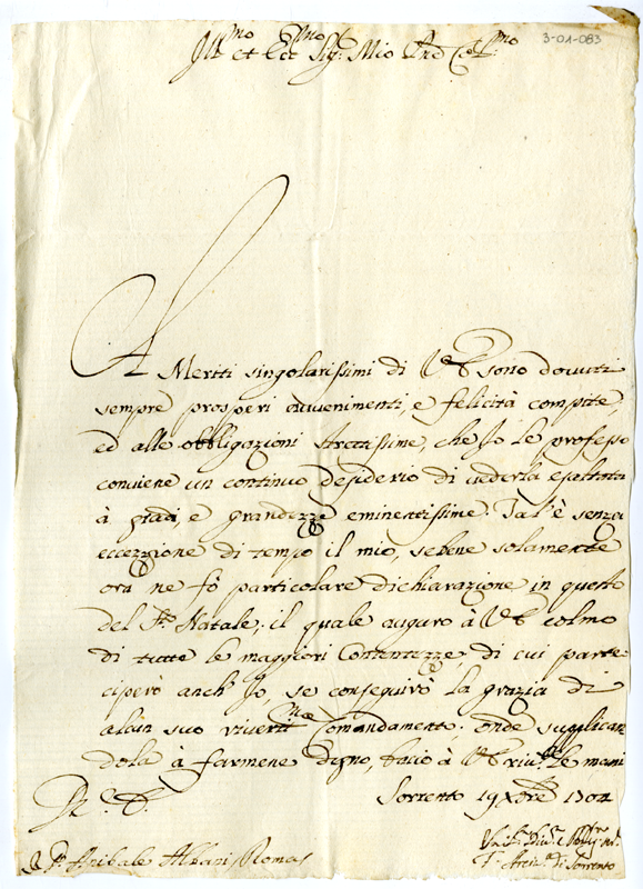 Lettera dell'arcivescovo di Sorrento ad Annibale Albani (1704 dicembre 19)
