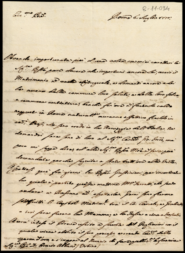 Lettere ricevute in Urbino dal Signor Principe Orazio Albani ultimo di questo nome nell'anno 1771