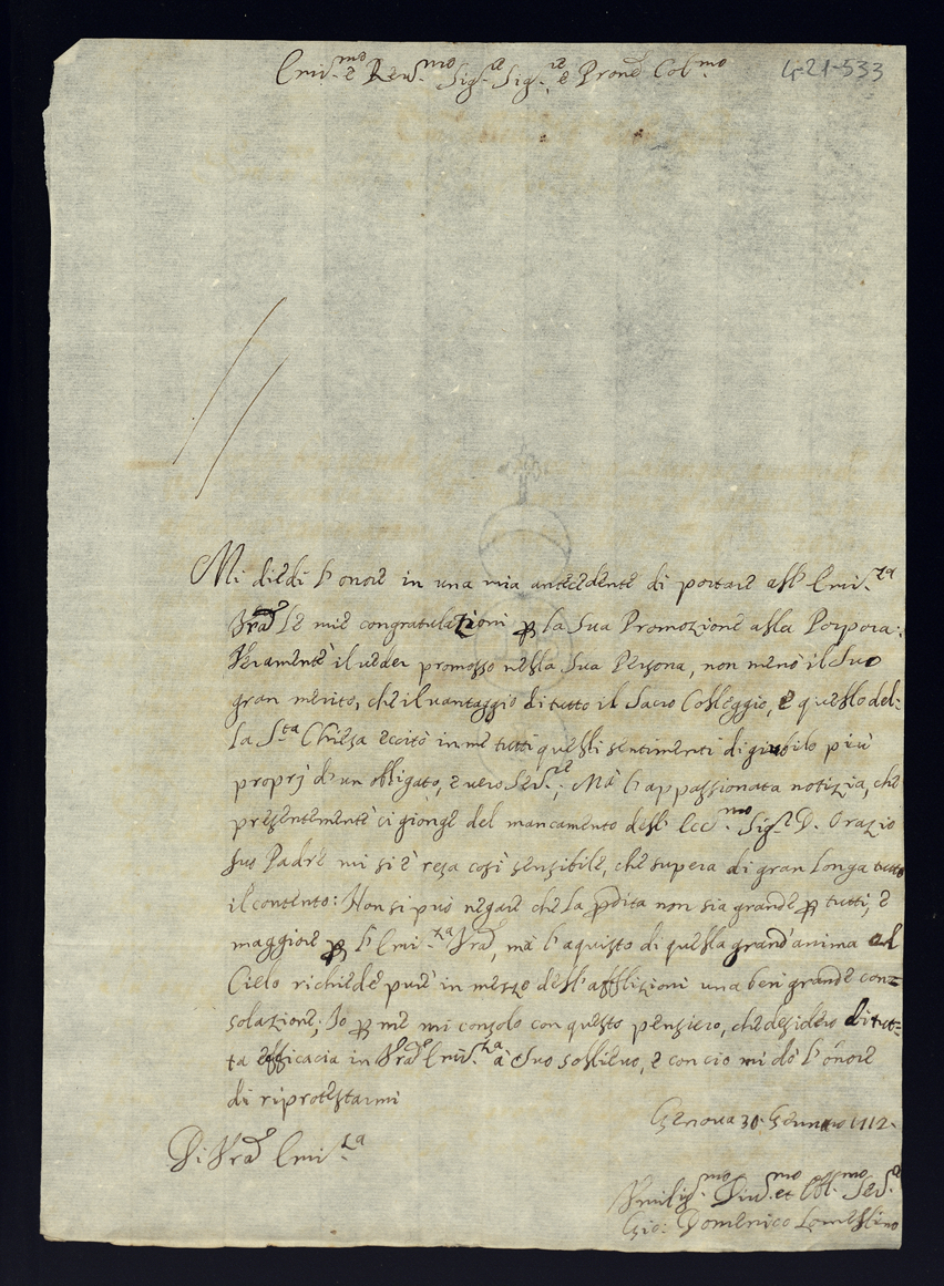 4. Lettere di condoglianza per la morte dell'eccellentissimo signor principe don Orazio Albani