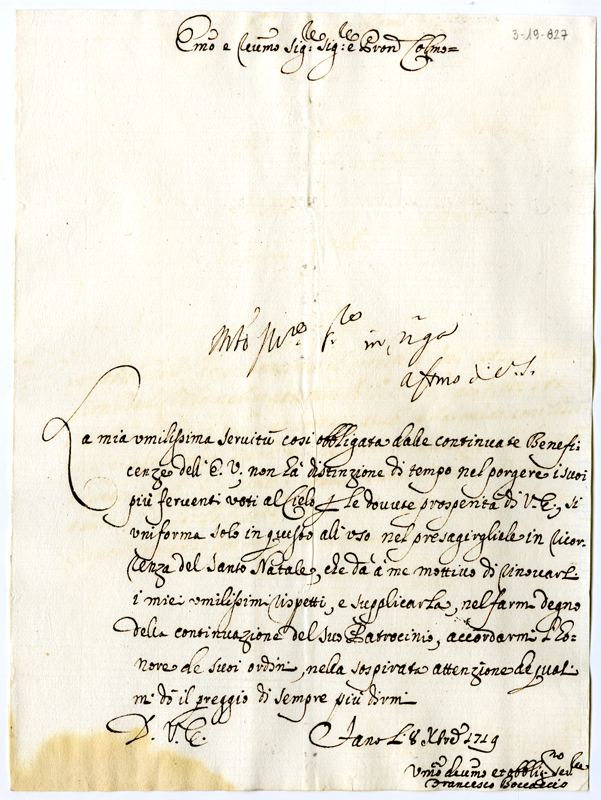 Lettera di Francesco Boccaccio ad Annibale Albani (1719 dicembre 8)