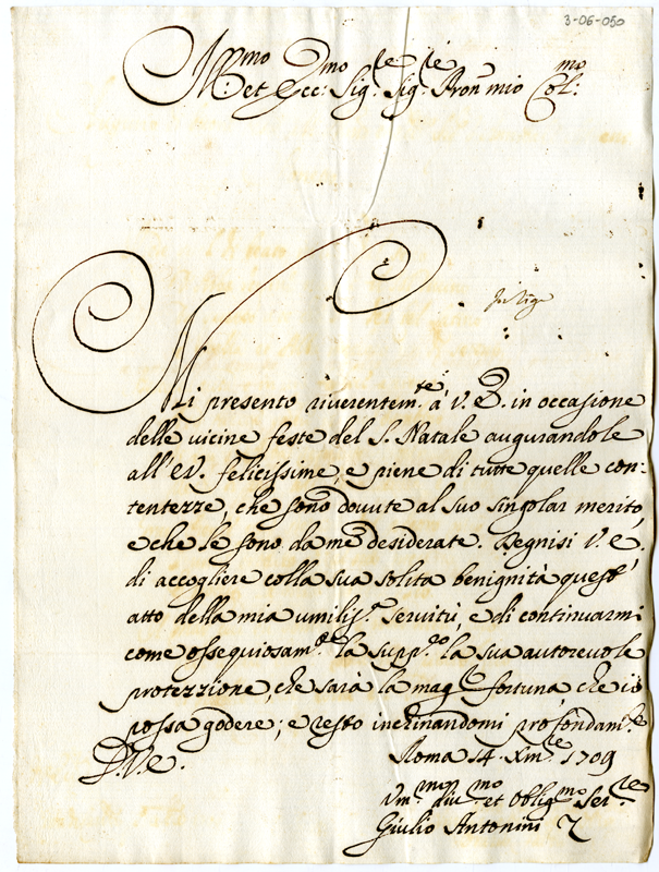 Lettera di Giulio Antonini ad Annibale Albani (1709 dicembre 14)