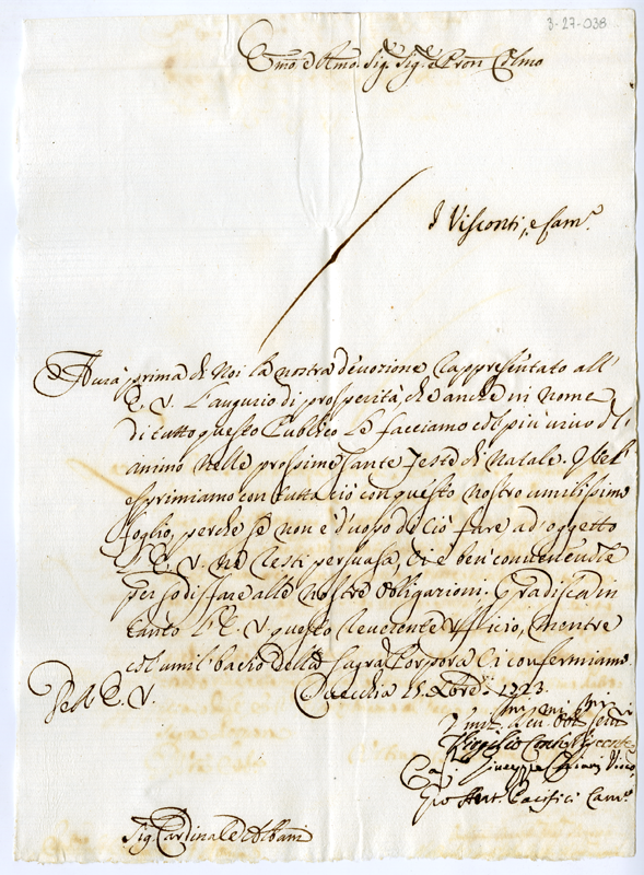 Lettera al cardinale Annibale Albani (1723 dicembre 15)