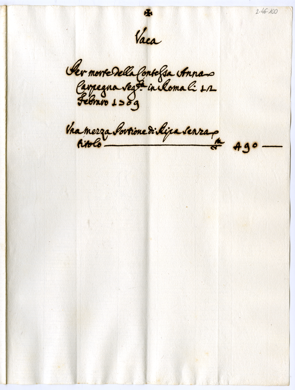Mezza porzione di Ripa vacante per morte della contessa Anna Carpegna (1709 febbraio 12)