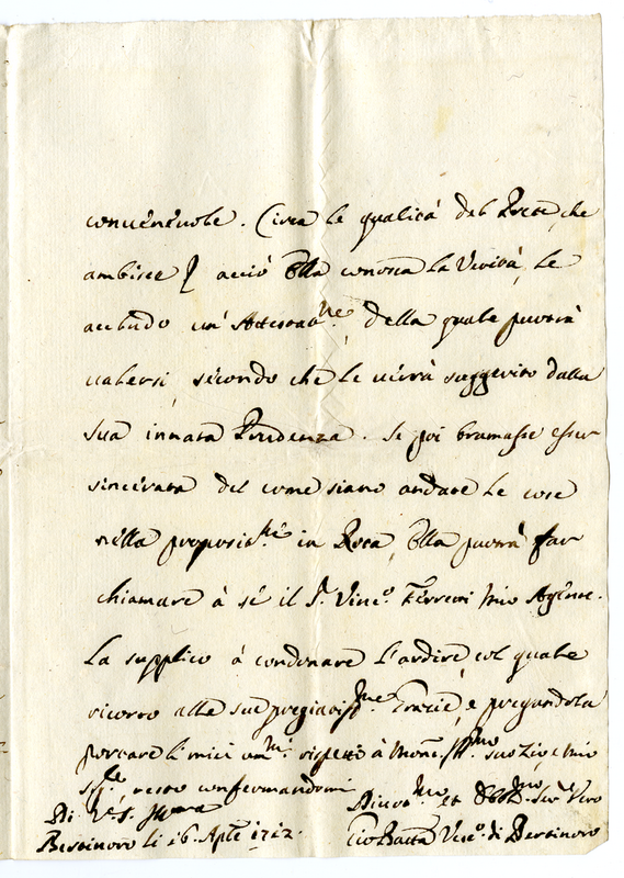 Lettera di Giovanni Battista Missiroli, vecovo di Bertinoro, a Clemente XI (1712 aprile 16)