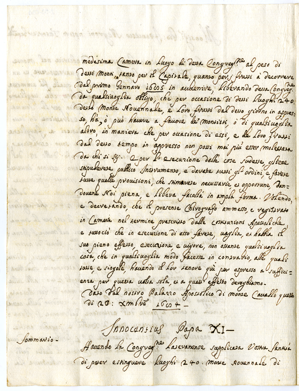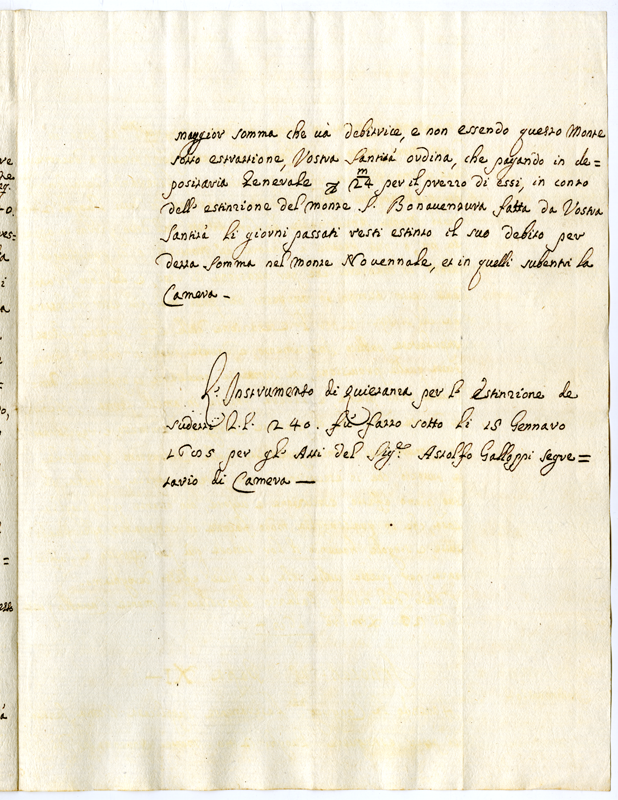 Sulla estinzione di un debito della congregazione Lateranense verso il Monte Novennale