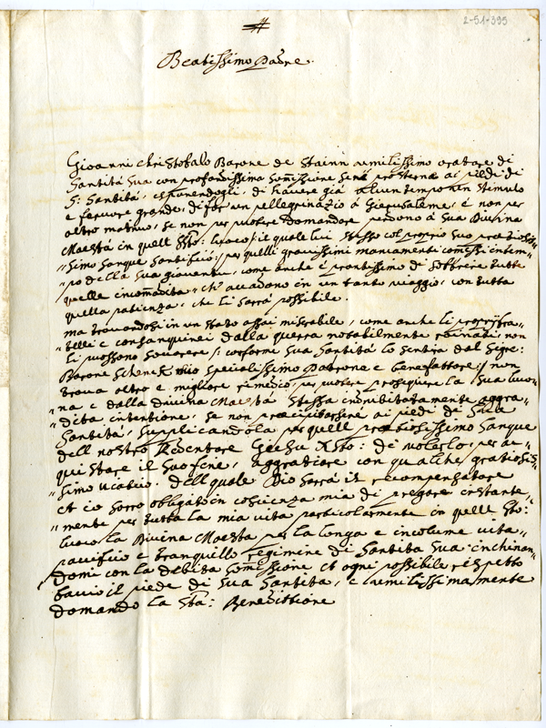 Lettera di Giovanni Cristofolo Barone de Stainn a papa Clemente XI (1700-1721)
