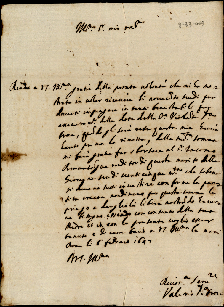 Scritture pertinenti alla rimessa della dote della signora Violante Santacroce con li Bramasangui
