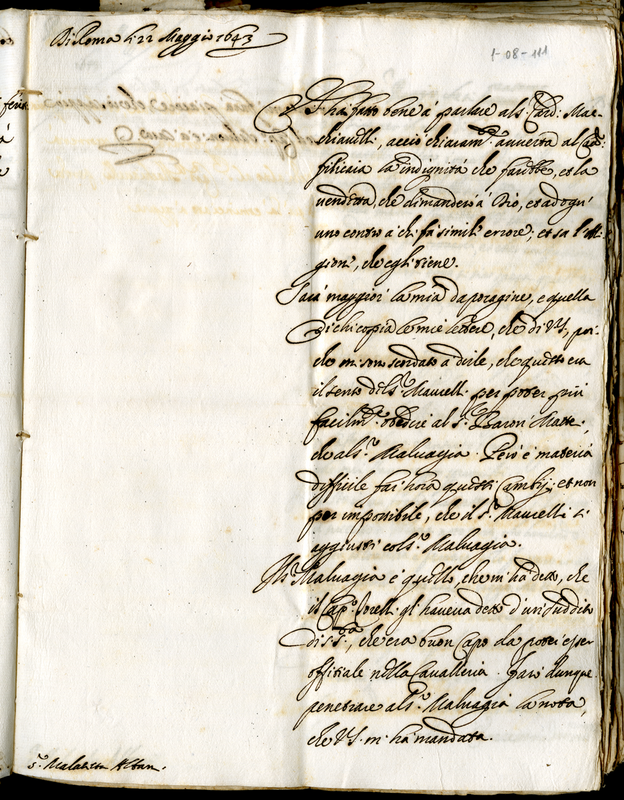 Lettera del cardinale Barberini Francesco senior a Malatesta Albani (1643 maggio 22)