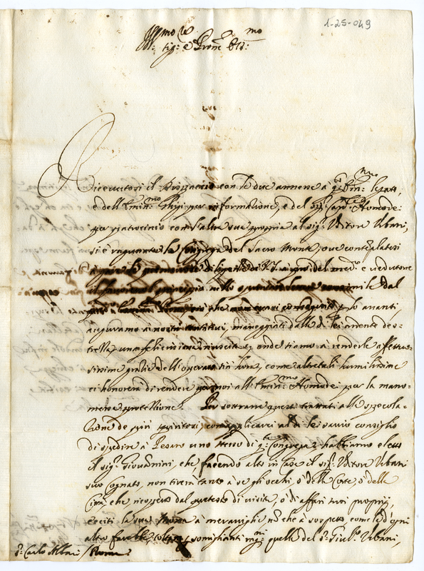 Lettera di Giovanni Andrea Rossi Mensale a Carlo Albani (1661 marzo 18)