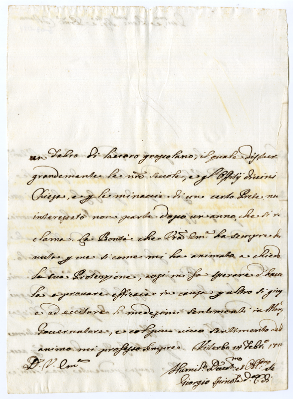 Lettera di Giorgio Spinola al Cardinale Annibale Albani (1716 febbraio 14)