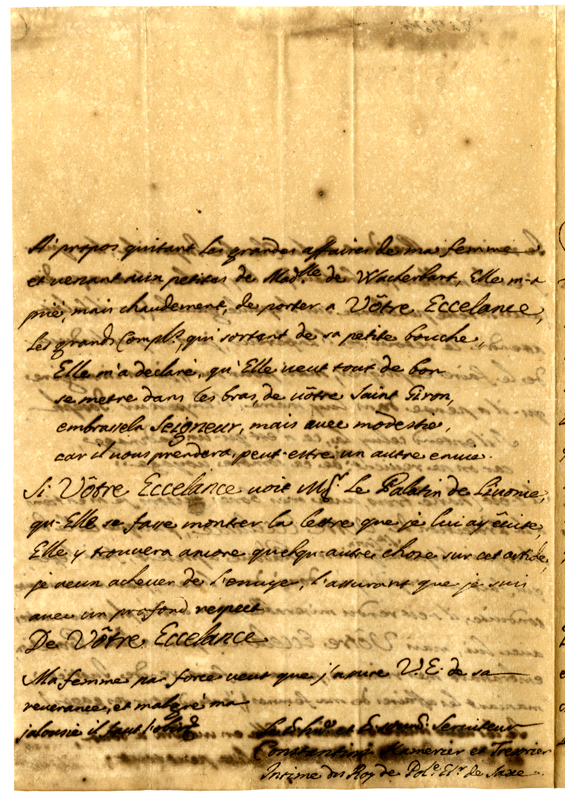 Lettera di Constantin cameriere e tesoriere ad Annibale Albani (1710)