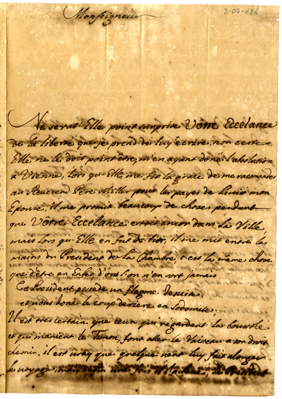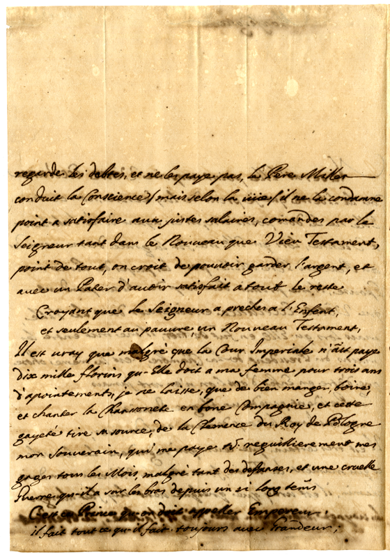 Lettera di Constantin cameriere e tesoriere ad Annibale Albani (1710)
