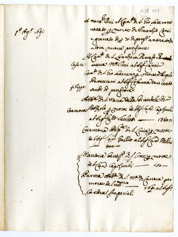Concessione di benefici di varie località per morte dei titolari (1691 agosto 1)