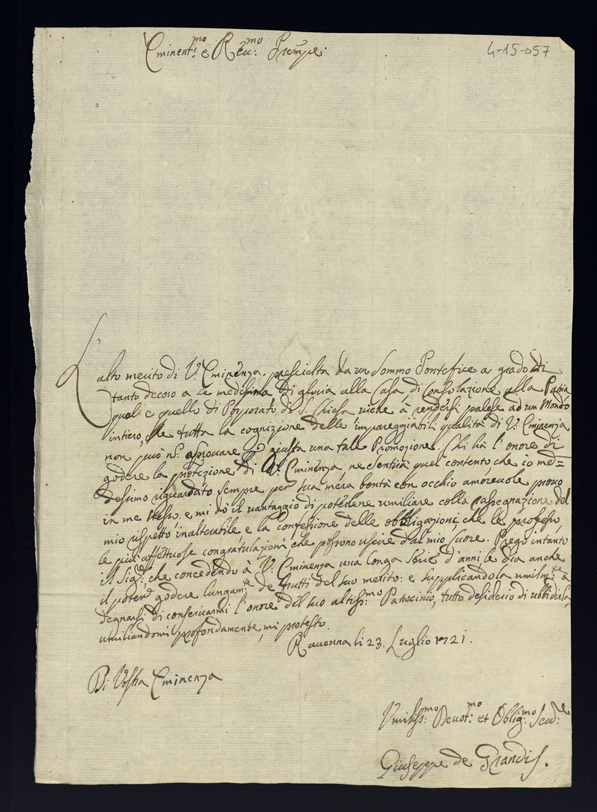 Lettere di congratulazione per l'esaltazione alla Porpora dell'eminentissimo cardinale Alessandro Albani