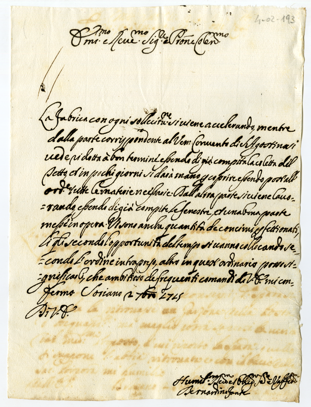 Lettera di Bernardino Fante al Cardinale Annibale Albani (1715 settembre 2)