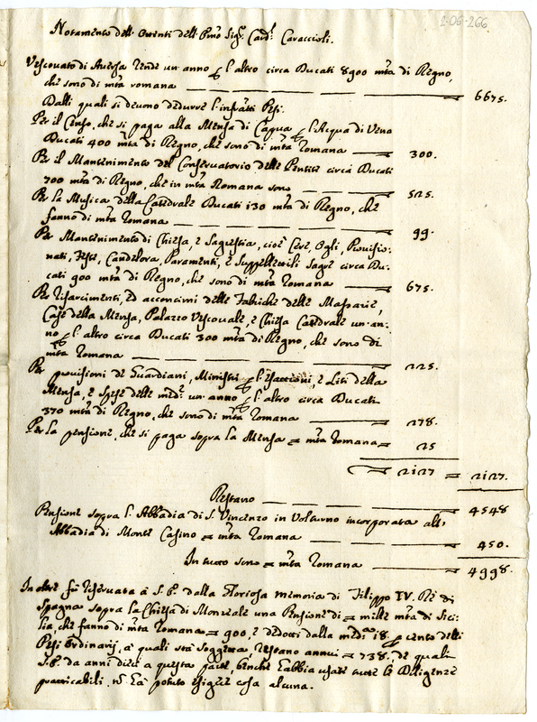 Notamento delli ottenti dell'Eminentissimo Cardinale Caracciolo (1715-1730)