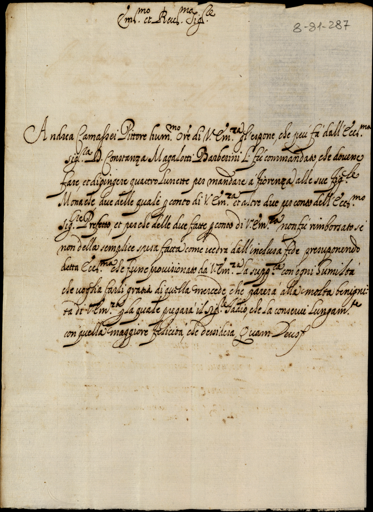 Memoriali diversi diretti al signor cardinale S. Onofrio