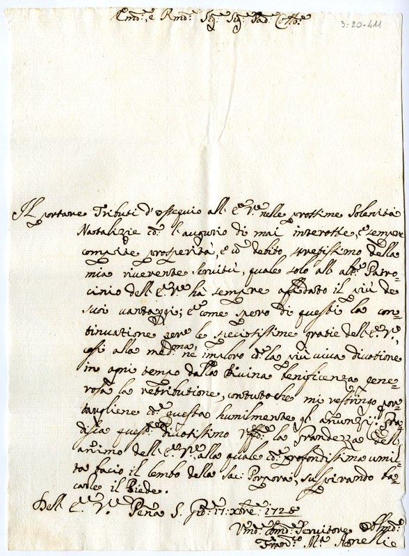 Lettera di Francesco Maria Agnelli al cardinale Annibale Albani (1728 dicembre 17)