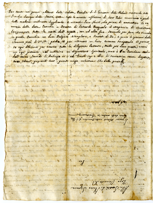 Lettera de i poveri abitanti nella parrocchia di San Giovanin de la Malva in Trastevere a papa Clemente XI (1700-1721)