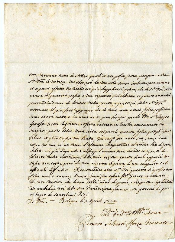 Lettera di Eleonora Salviati Sforza a Clemente XI (1712 aprile 2)