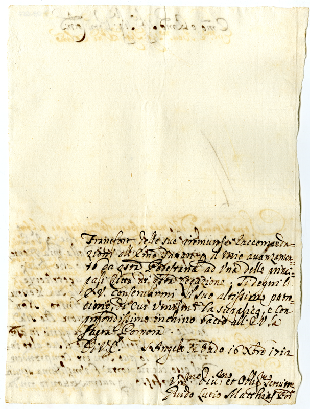 Lettera di Guido Lutio Matthias al cardinale Annibale Albani (1712 dicembre 16)